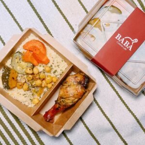 Pour le repas du midi, nous sommes heureux de vous proposer un menu du restaurant Baba Cuisine Lab, tout spécialement conçu pour ce jour :